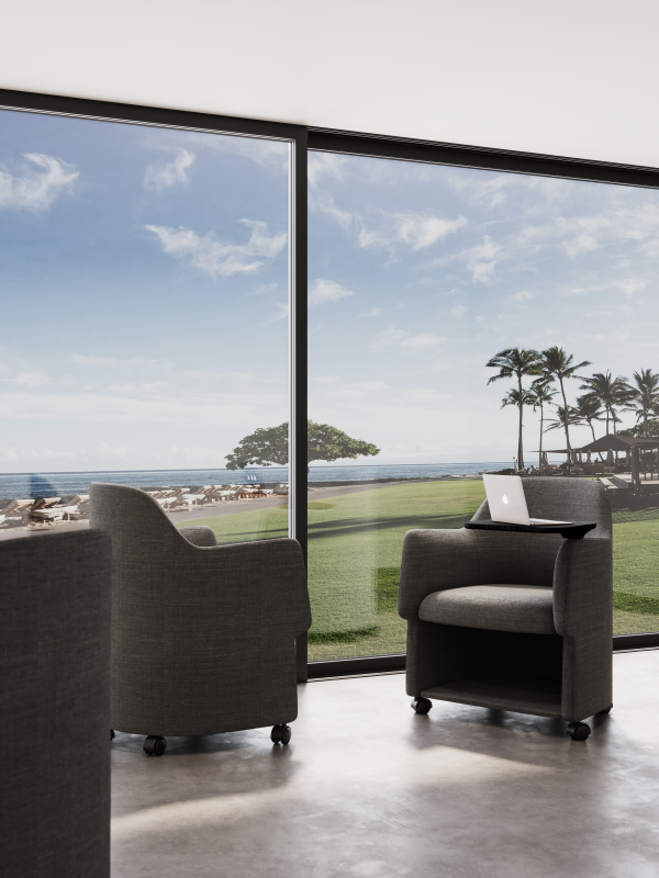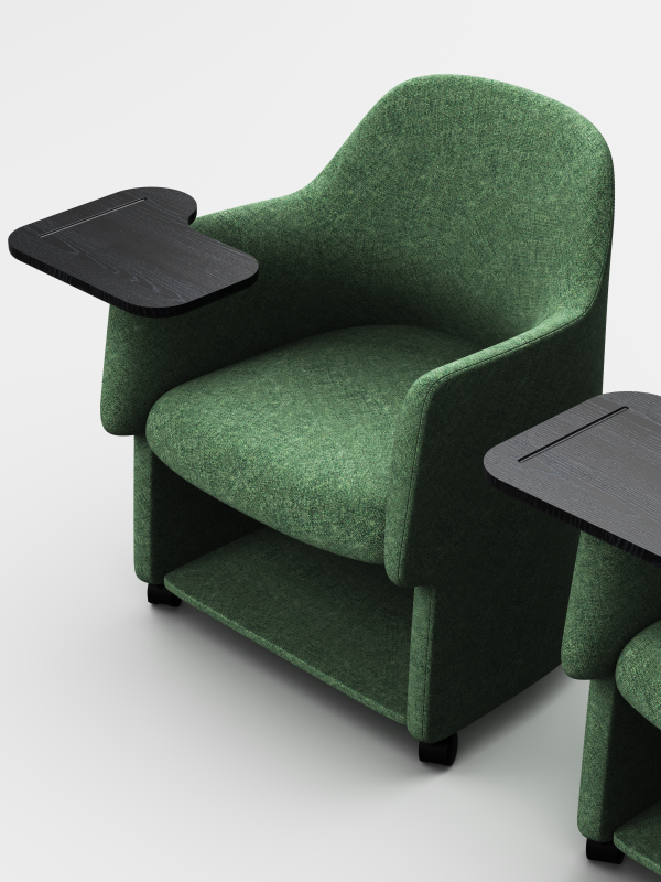 Inspired by the rounded and slightly slanted branches of a cactus, the Cactus Training Chair has a lively and natural design. It is highly versatile, available in both a single-seat version and one with an attached writing tablet, making it suitable for a variety of spaces such as training rooms, lobbies, and discussion areas.