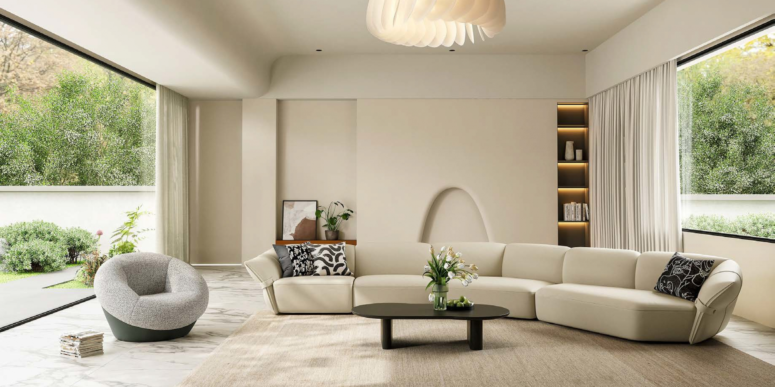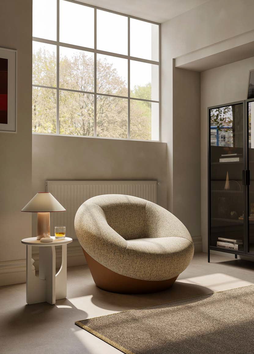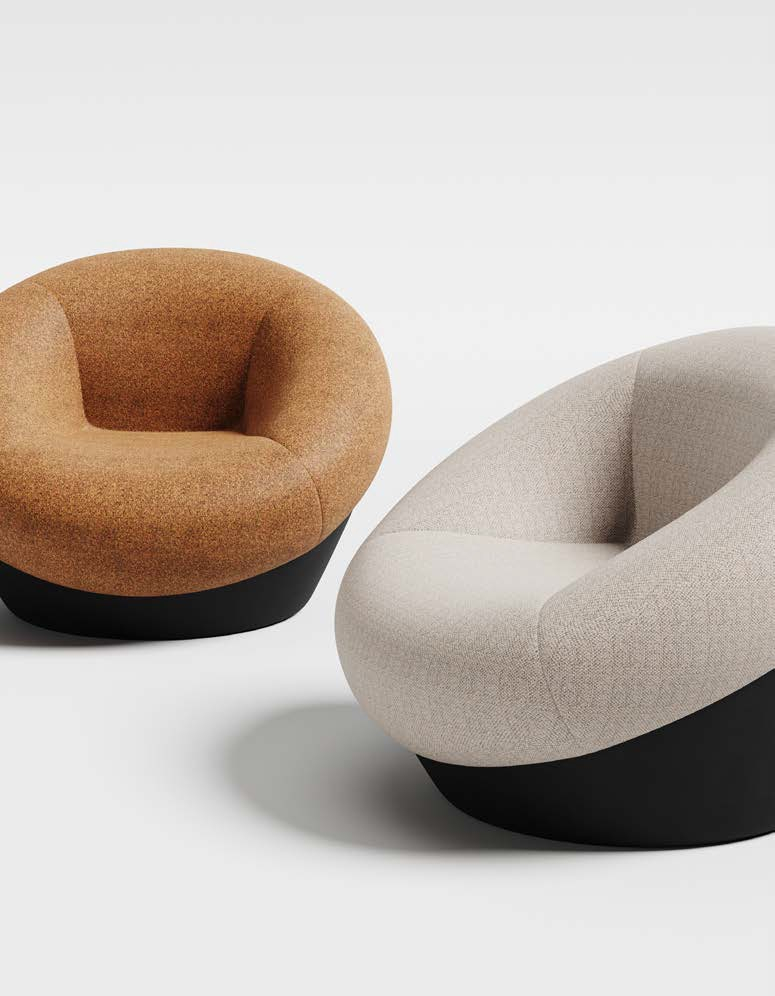 Inspired by the natural form and symbolism of a pine cone, this lounge chair reflects a quiet harmony between design and nature. Its sculpted upholstery mimics the layered contours of the pine cone, while the use of contrasting colors adds striking visual depth.A soft core supported by a firm structure ensures lasting comfort, aligning with the modern desire for relaxed living. The piece invites moments of ease and contentment, both physically and emotionally.