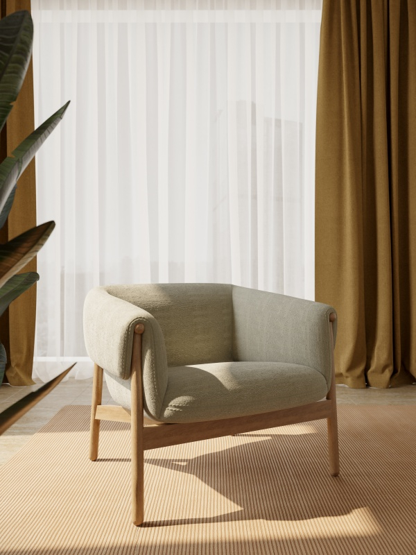Inspired by jellyfish, the Jellyfish Lounge Chair features a fluffy cushion design that contrasts with slender legs. The folded upholstery mimics the movement of a jellyfish, giving the chair a lively appearance and a comfortable feel.