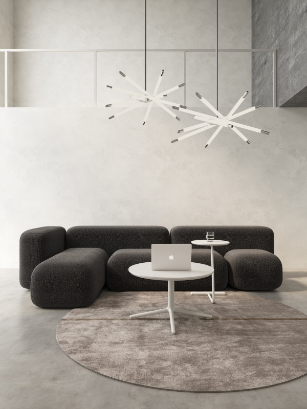The City sofa integrates elements like side tables, stools, armrests, backrests, and cushions. Even a single module can function as a complete piece of furniture. Its high degree of freedom offers endless possibilities for leisure areas, adapting to different spaces and user postures to create a "city" of your own. The visual effect of the City sofa resembles the complex and neatly arranged buildings of a modern city. Each sofa module features a dual-fabric design, blending the luxurious texture of cashmere on the upper part with the durable feel of leather on the lower part. This not only enhances the sofa's texture but also makes daily cleaning and maintenance more convenient.