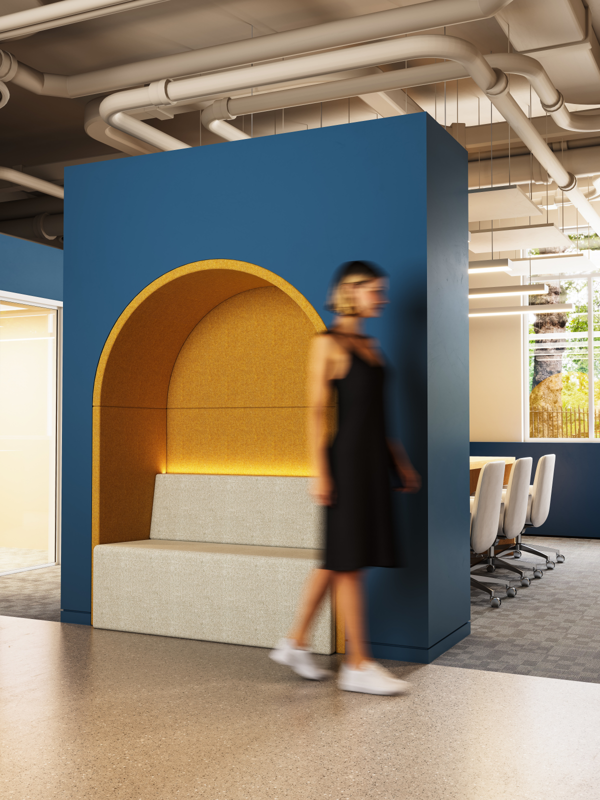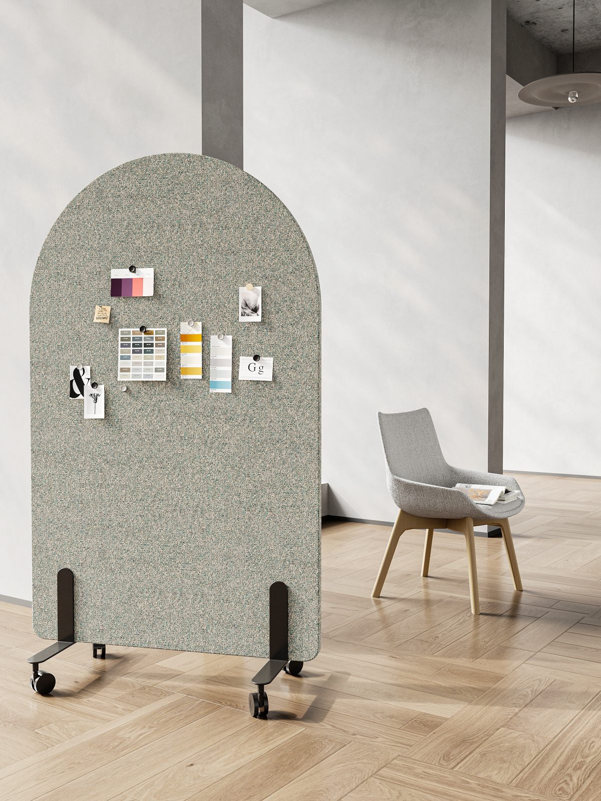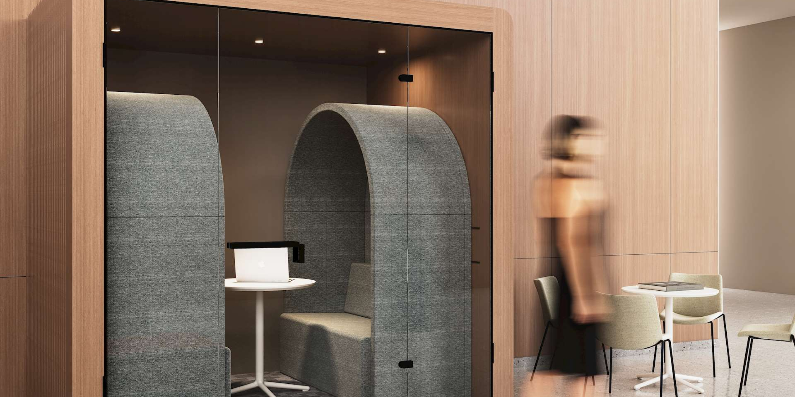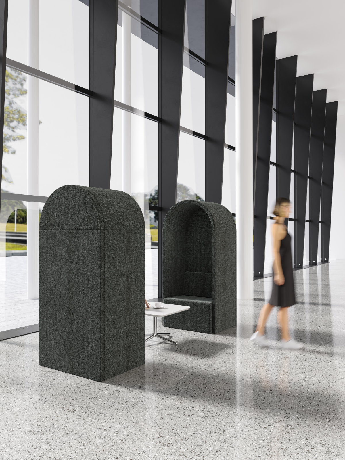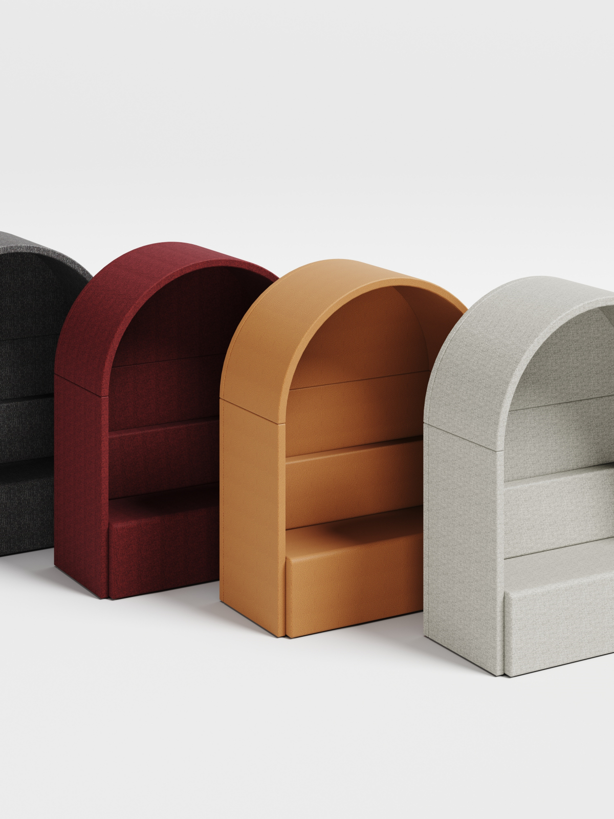 The ROMA series draws inspiration from Roman architectural elements—specifically, the arch and the Roman column. The designer integrated these two elements into modern office behavioral science to create furniture that combines privacy with practical functionality, while also building a small, stately "architectural structure" that stands within the office and lounge area.